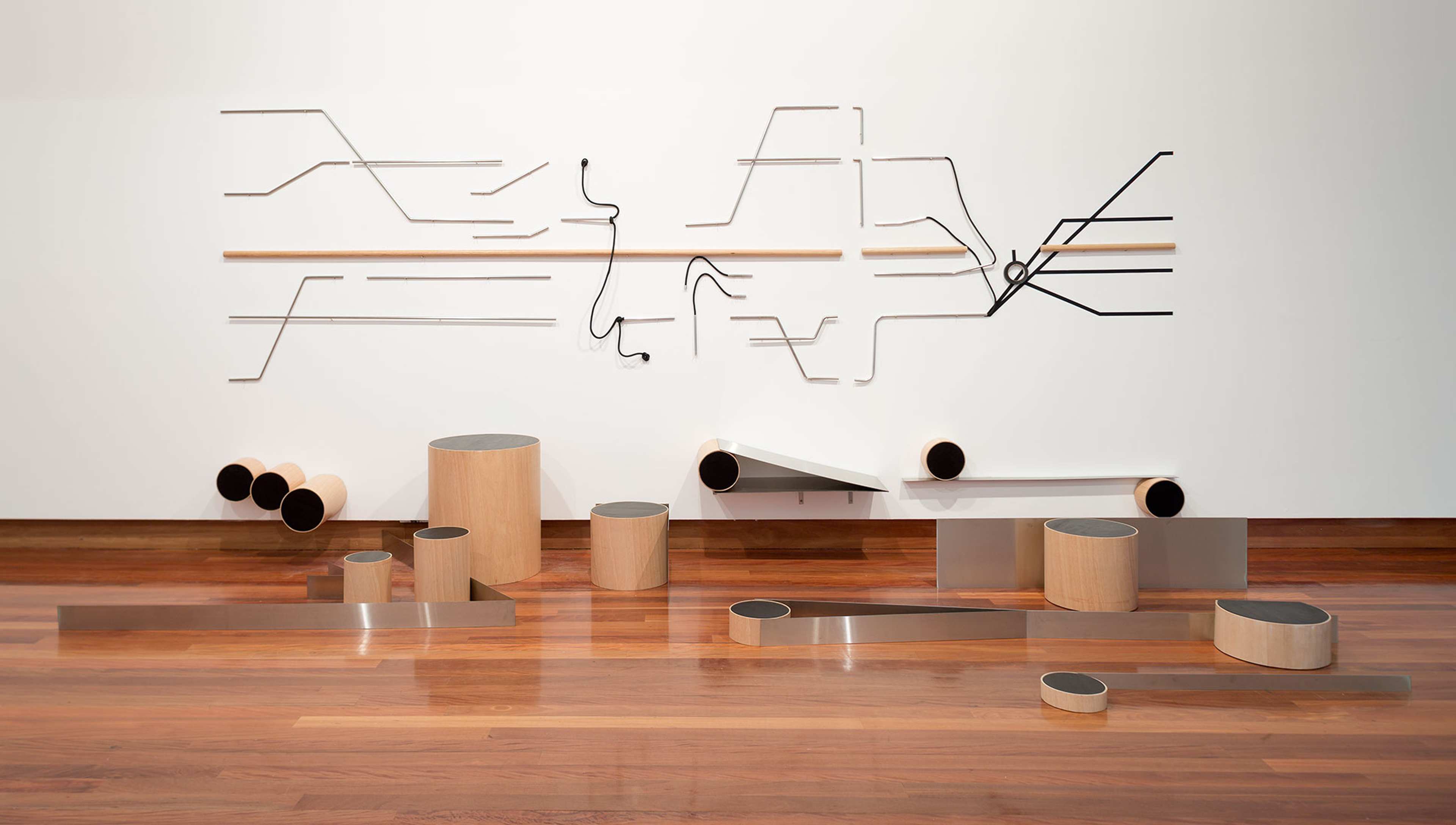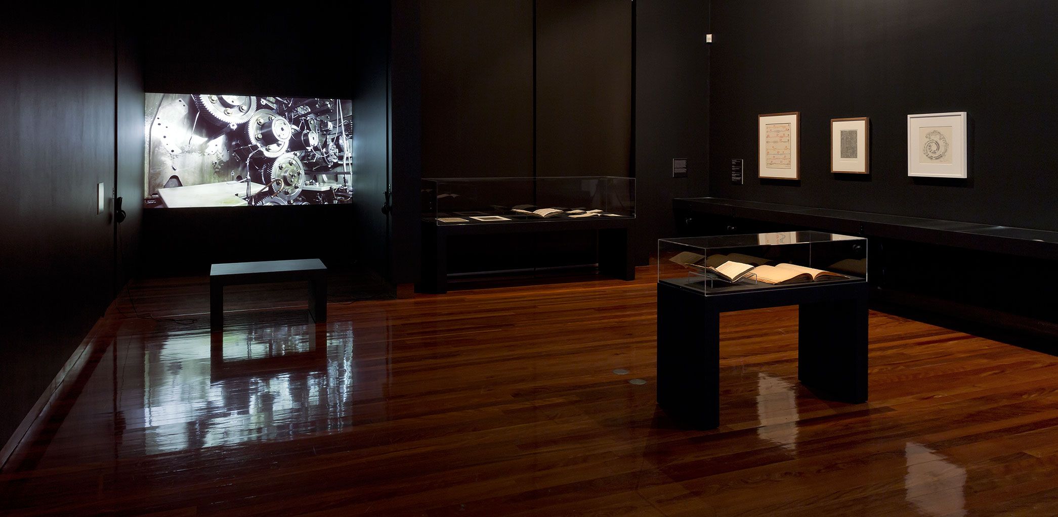 Spanning all three floors of the Potter, the exhibition included examples of music and dance notation from Medieval manuscripts through to graphic notation of the 1960s alongside artworks and performances. The colour music experiments of Modernist abstract painters such as Roy de Maistre and Ludwig Hirschfeld-Mack complemented a more recent series of works by John Nixon, whose paintings were ‘played’ by a musical ensemble as part of a performance in the gallery. Influential composer John Cage’s movable scores made of Plexiglas and acetate sat alongside Marco Fusinato's drawings that compress Cage’s Water Music score into one moment. Performance videos by Yuki Kihara and Christine Sun Kim & Thomas Mader explored the communicative potential of hand gestures. Sriwhana Spong translated a diary text by ballet dancer Vaslav Nijinsky into choreography, while Nathan Gray transformed the composer Cornelius Cardew’s epic graphic score Treatise into sculpture.