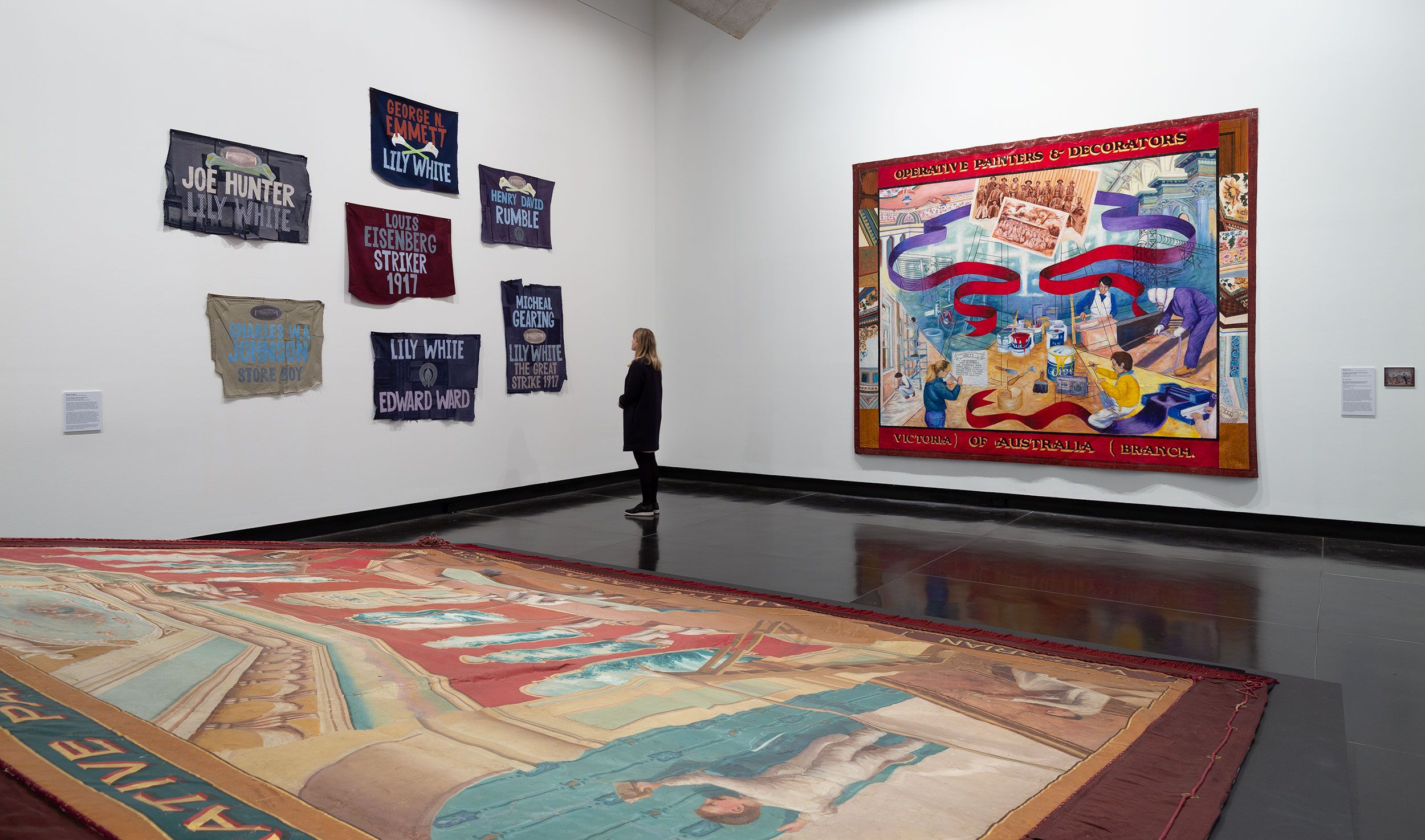 Alongside a selection of recent contemporary artworks, the exhibition highlighted two periods in Australian history when interactions between artists and the labour movement were particularly rich: the Depression era of the 1930s and 40s – when the political convictions of social realist artists were reflected in artworks depicting the hardships faced by workers and their families; and the 1970s and 80s – when the introduction of community arts funding nurtured a flowering of cultural activity within trade unions and trades councils, in the form of banner and mural painting, factory festivals and artist-in-the-workplace residencies.